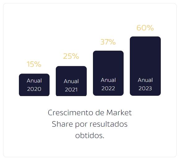 Crescimento de Market Share por resultados obtidos.